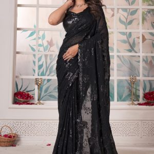 Beautiful Trendy Black Sequin Saree on Premium Silk Fabric
