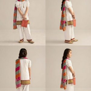 Dress your little one in elegance with this stunning 3-piece ethnic ensemble. Featuring a vibrant Royal Purple Kurta with intricate gold threadwork, paired with a contrasting Sea Green Salwar and a matching Embroidered Dupatta, this set is perfect for weddings, festivals, and special celebrations