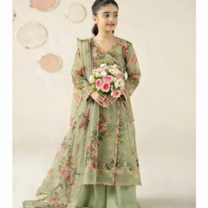 Capture the magic of childhood celebrations with our Sage Green Floral Organza Angrakha Suit. This outfit isn’t just a dress; it’s a memory in the making. Inspired by the timeless heritage of the Angrakha, we’ve modernized this silhouette with a fresh
