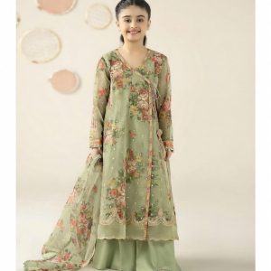 Little Grace Sage Green Floral Angrakha – 3-Piece Luxury Suit